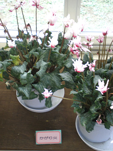 Pho.7は暖炉をイメージした植栽でポインセチアを暖炉の火に見立てています。 暖炉の火が出たところで、こちらはシクラメンのかがり火という品種です(Pho.8)。美術館では、ポインセチアとシクラメンの様々な品種展示もしています。