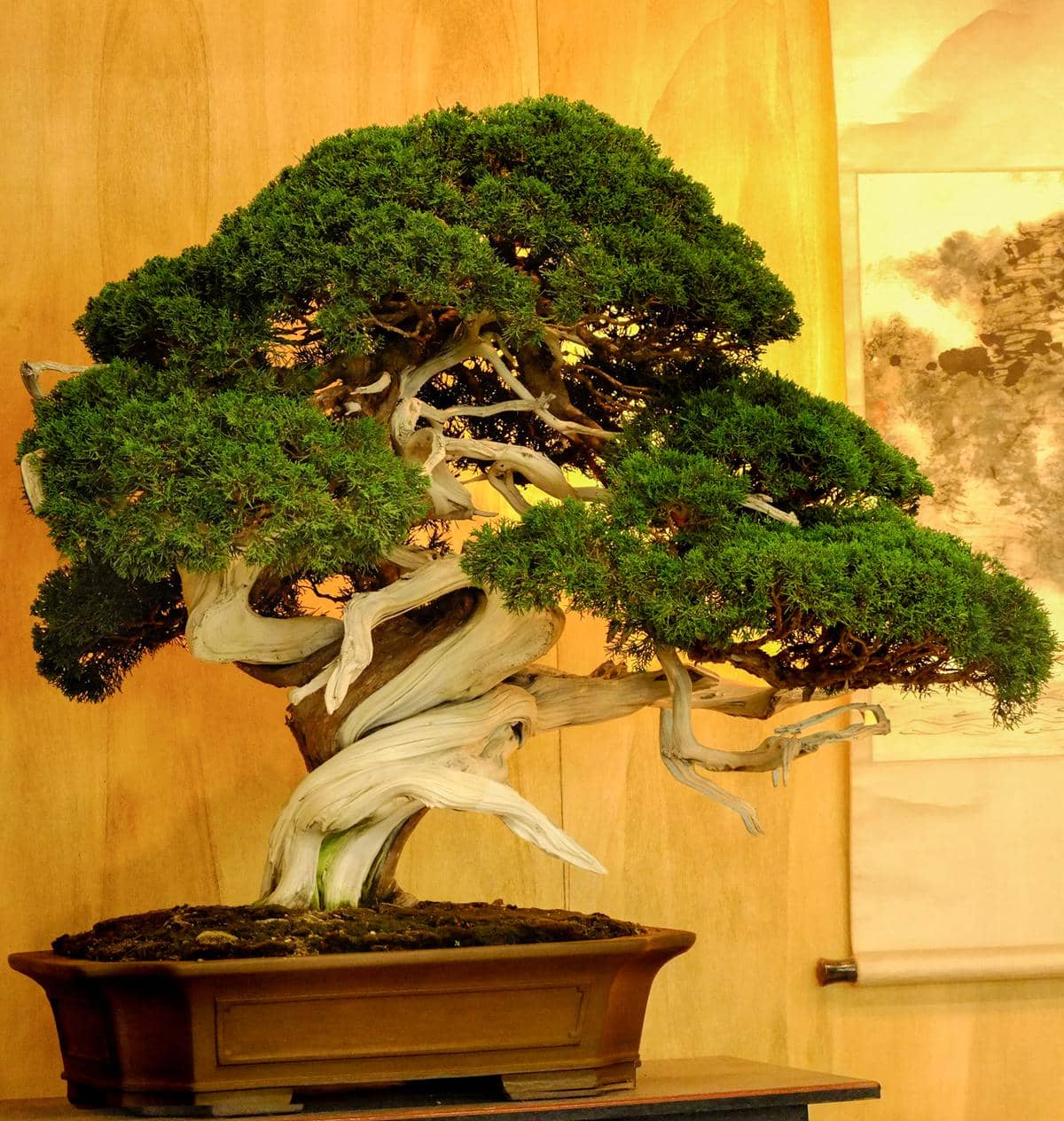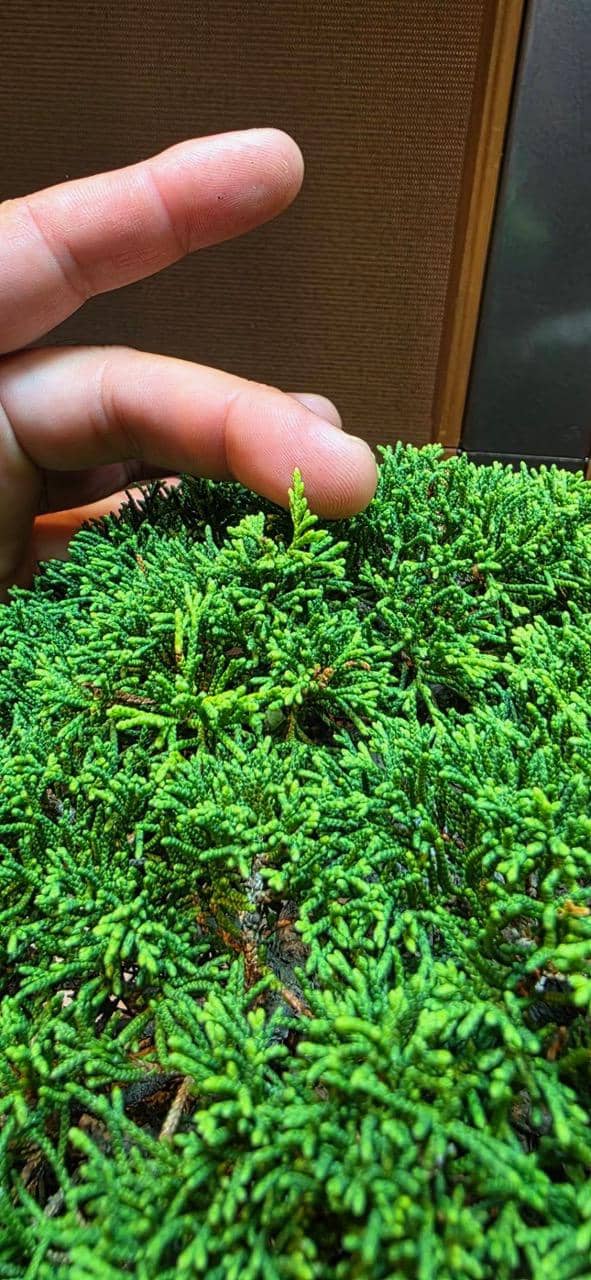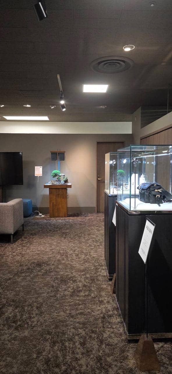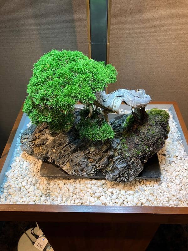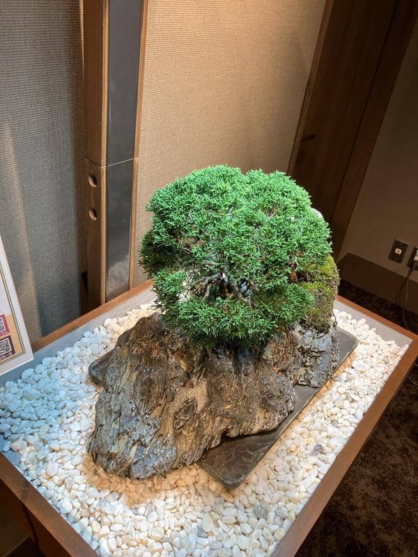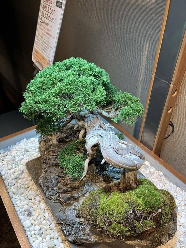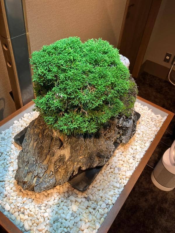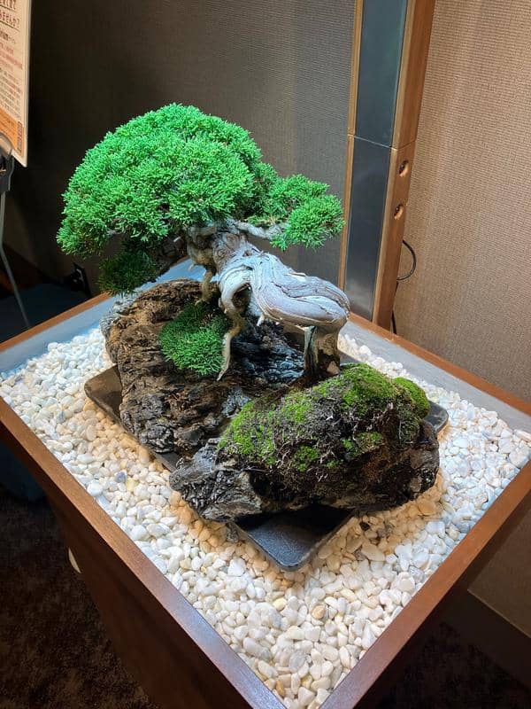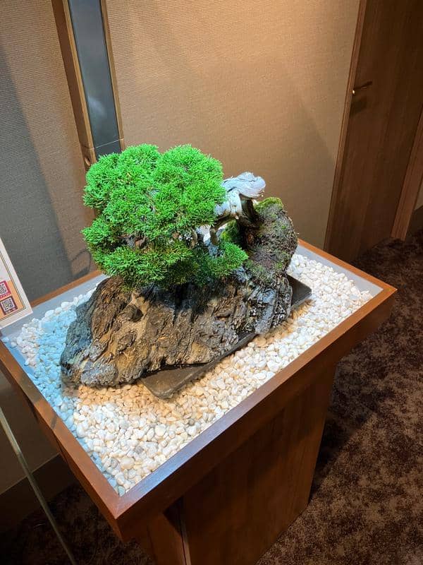サロンに展示してもうすぐ6ヶ月、自然光がゼロの室内で樹齢70年の真柏は真に美しい状態を保ちながら成長しています。